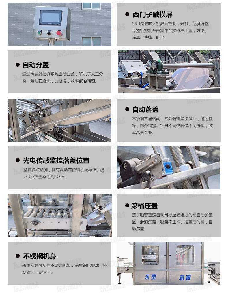 1.“自動(dòng)吸蓋”自動(dòng)控制系統(tǒng):整機(jī)多點(diǎn)檢測(cè),通過(guò)光電傳感監(jiān)控落蓋位置