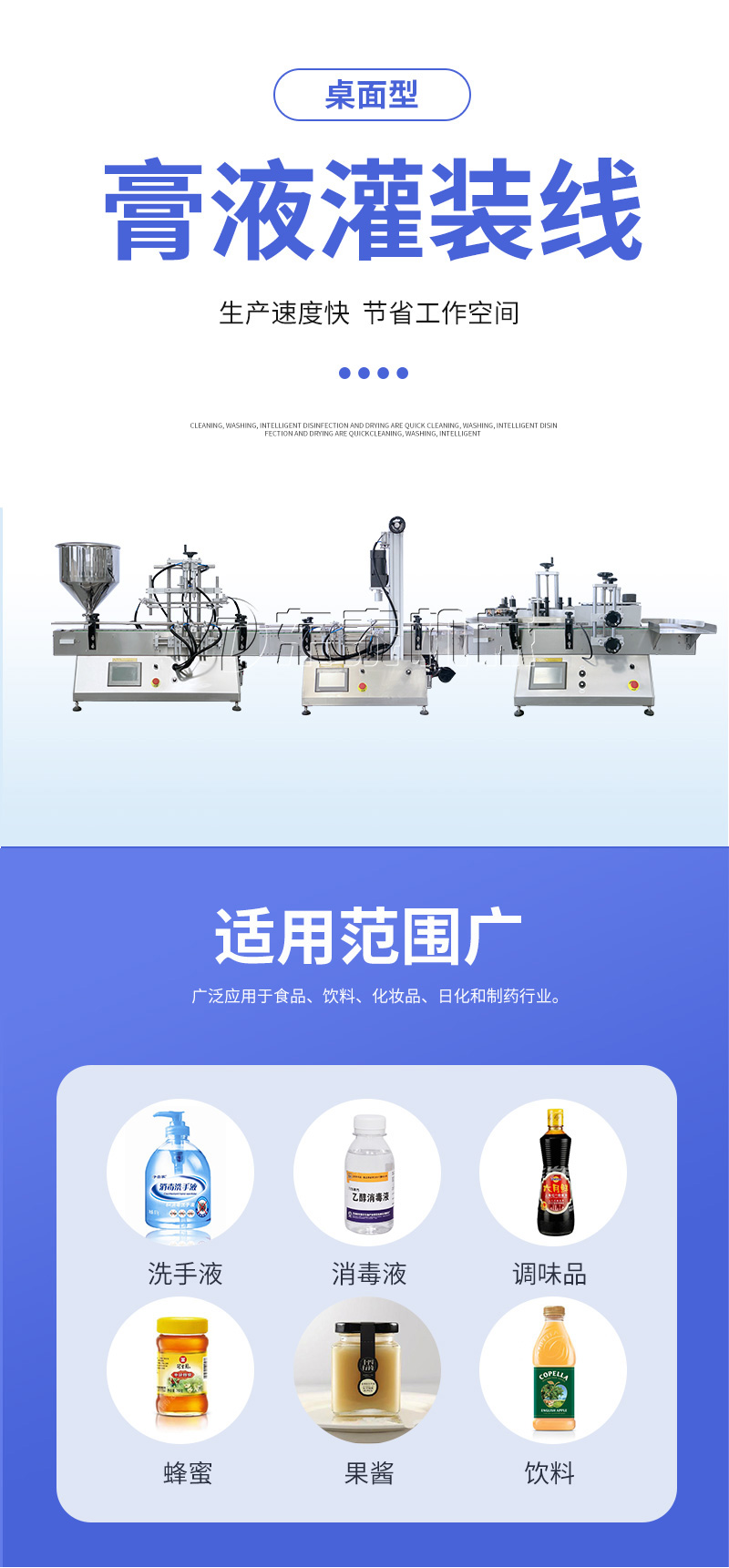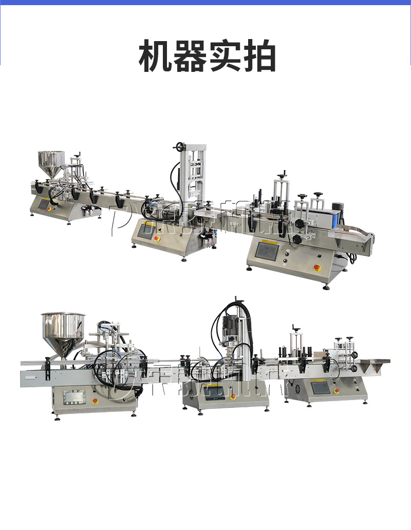 產(chǎn)品說明:生產(chǎn)線根據(jù)灌裝范圍選擇型號,灌裝部分為雙頭下潛式灌裝機,適用于不同物料不同瓶子的灌裝,配備自動壓蓋機和圓瓶貼標(biāo)機,可實現(xiàn)不同蓋子的旋蓋貼標(biāo)工作。 本設(shè)備主要適用于食品、日;